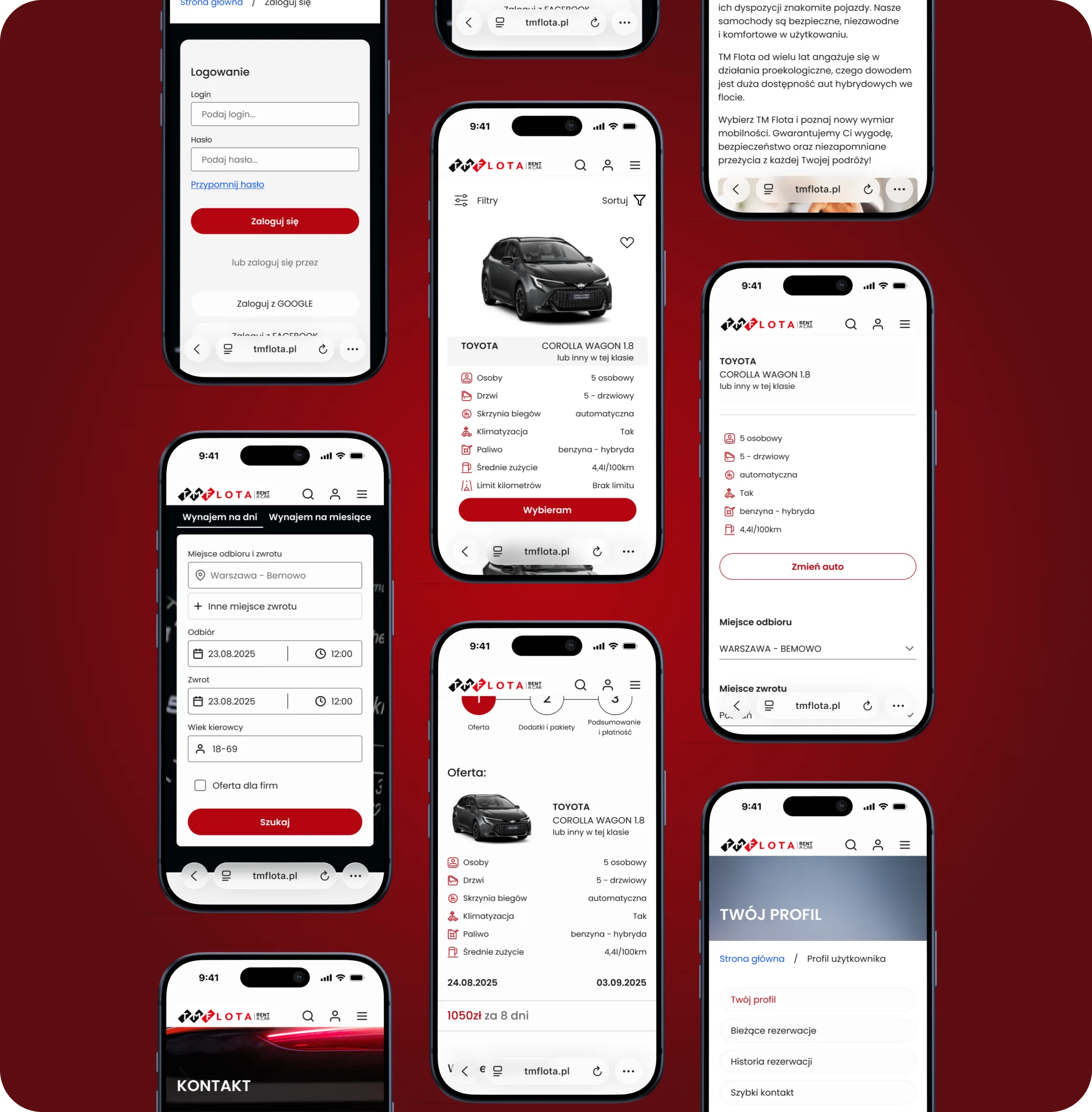 Stworzyliśmy kompletny design od podstaw, który oddaje premium charakter marek Toyota i Lexus oraz profesjonalizm TMFlota jako firmy działającej od 2007 roku. Elegancka kolorystyka, nowoczesna typografia, wysokiej jakości fotografie samochodów i przejrzysty layout budują zaufanie i zachęcają do rezerwacji. Design jest w pełni responsywny i działa równie dobrze na desktopie, tablecie i smartfonie.