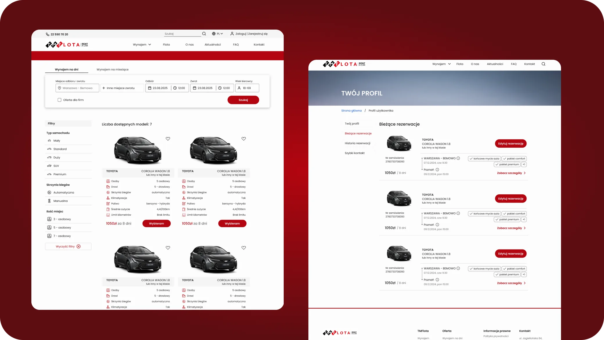 - Panelem użytkownika – klienci po zalogowaniu muszą mieć dostęp do swoich rezerwacji, informacji o wynajmach, historii i dokumentacji.
