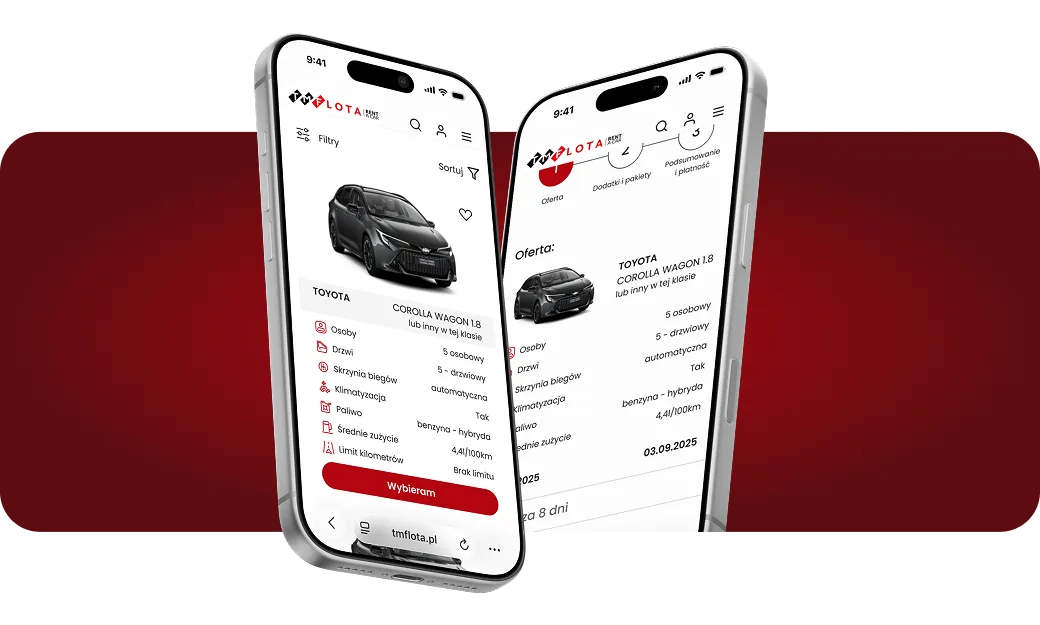 Zaprojektowaliśmy aplikację tak, żeby równie dobrze obsługiwać klientów indywidualnych szukających auta na weekend (B2C) i firmy potrzebujące długoterminowego wynajmu floty lub Car Fleet Management (B2B). Ścieżki użytkownika są dostosowane do kontekstu, ale interfejs pozostaje spójny i intuicyjny. To pozwala TMFlota obsługiwać oba segmenty bez konieczności budowania dwóch osobnych platform. -