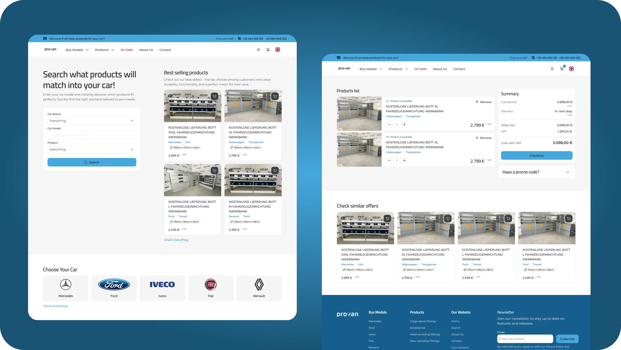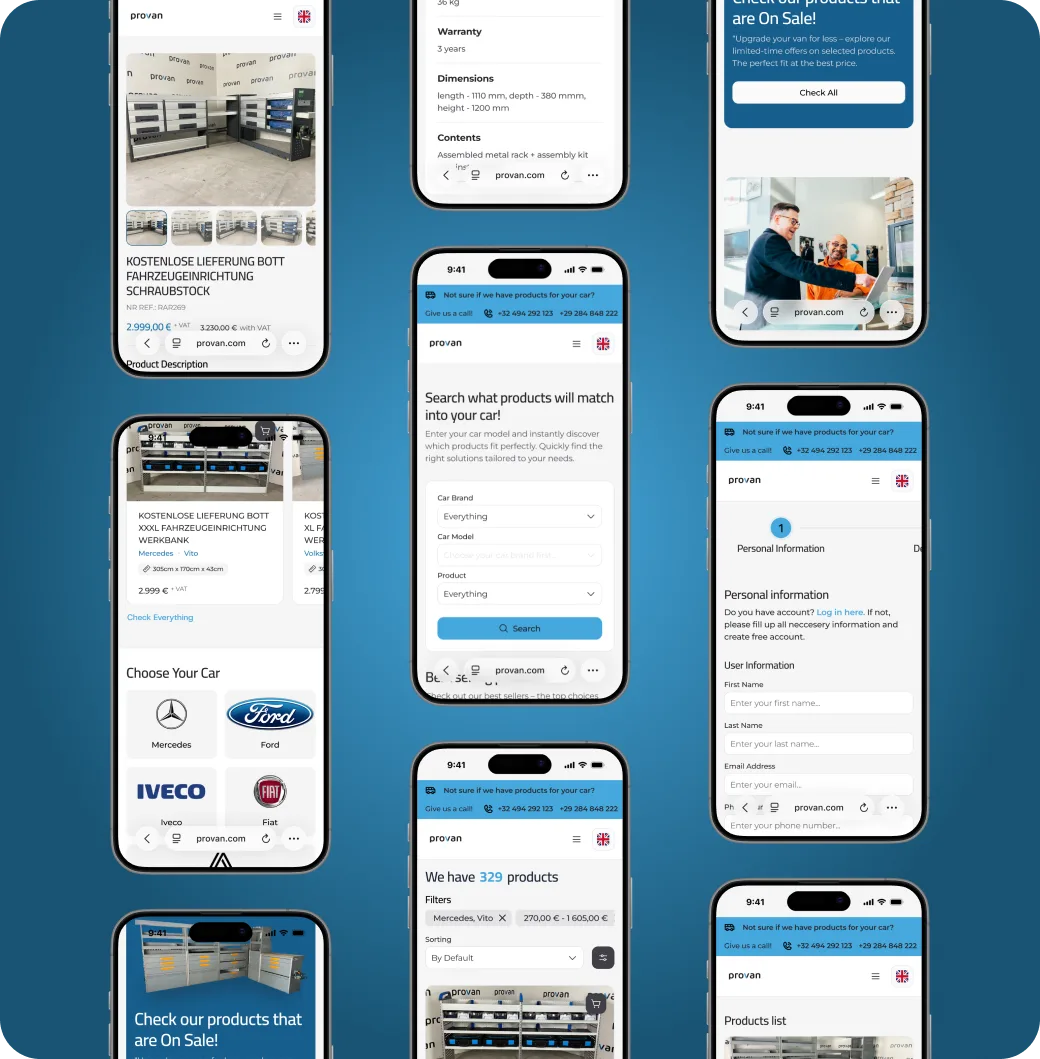 We created a professional, premium design that captures Provan’s position as a trusted European partner in van bodies. The elegant color scheme, modern typography, high-quality product photography and clear layout build trust and emphasize the company’s professionalism. The design is universal to different European cultures, but at the same time stands out from the competition. -